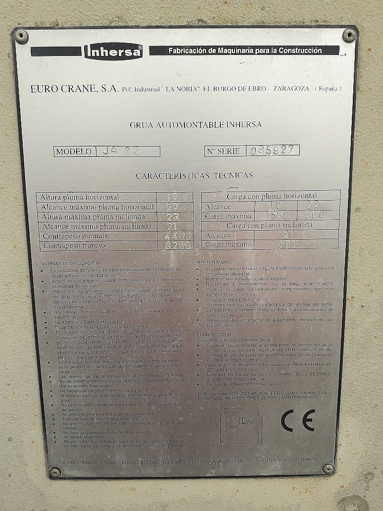 • Pluma: 22 mts
